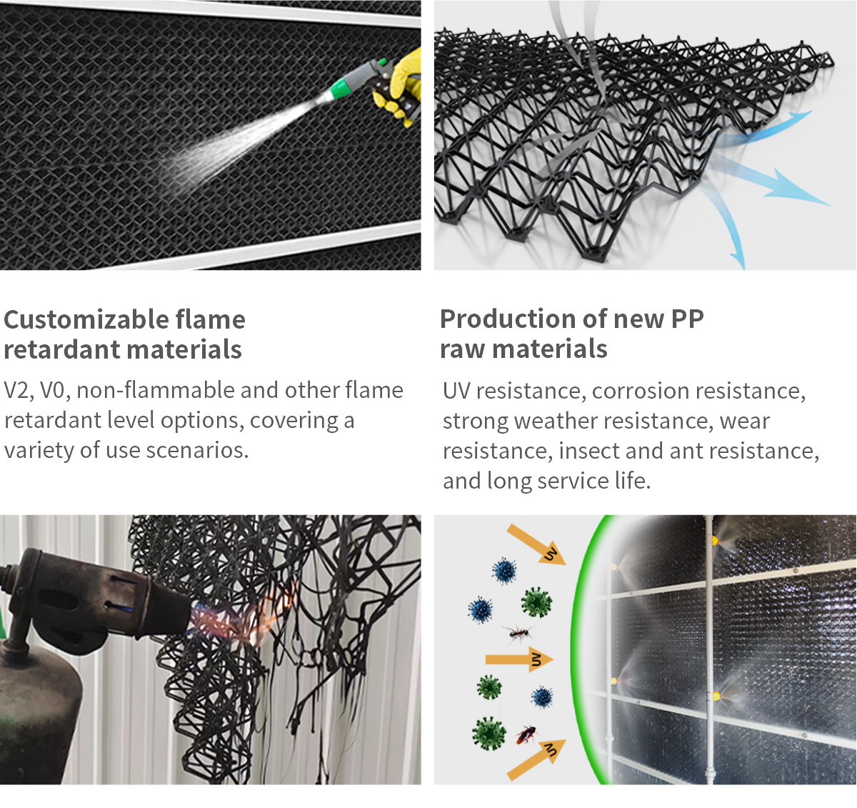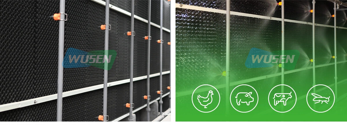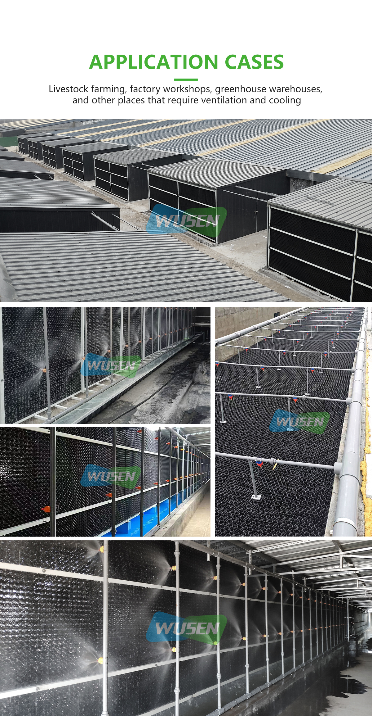 4。與水分管道的匹配使用,特殊設計的噴霧系統可以使水均勻地浸入冷卻墊中。